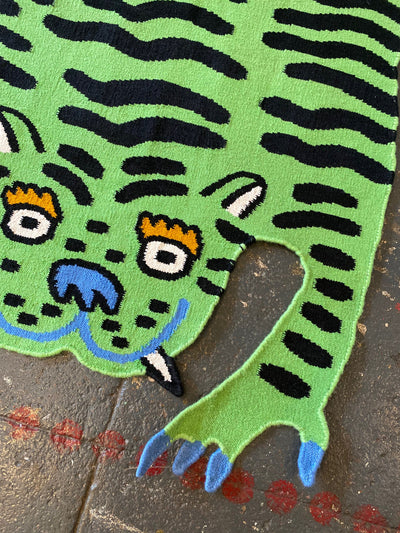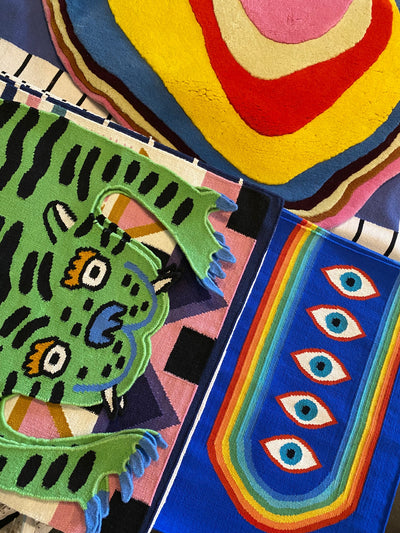 In collaboration with LA based artist GENTLE THRILLS and inspired by the classic Tibetan tiger rug, we are proud to present these wonderfully weird flatwoven carpets.