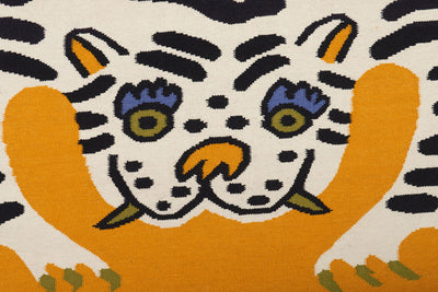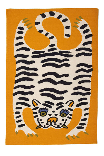 In collaboration with LA based artist GENTLE THRILLS and inspired by the classic Tibetan tiger rug, we are proud to present these wonderfully weird flatwoven carpets.