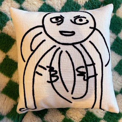 Embroidered 18x18" pillow cover with white cotton backing. Dry clean only.